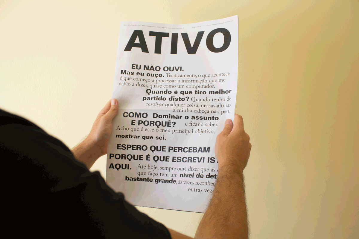 Newspaper based on the students personality, where some of their thoughts and subjects are reflected through words, images and graphic compositions. This project was also linked to another in which it was intended to intervene in the problems of the future of cities: sustainability, well-being and safety.